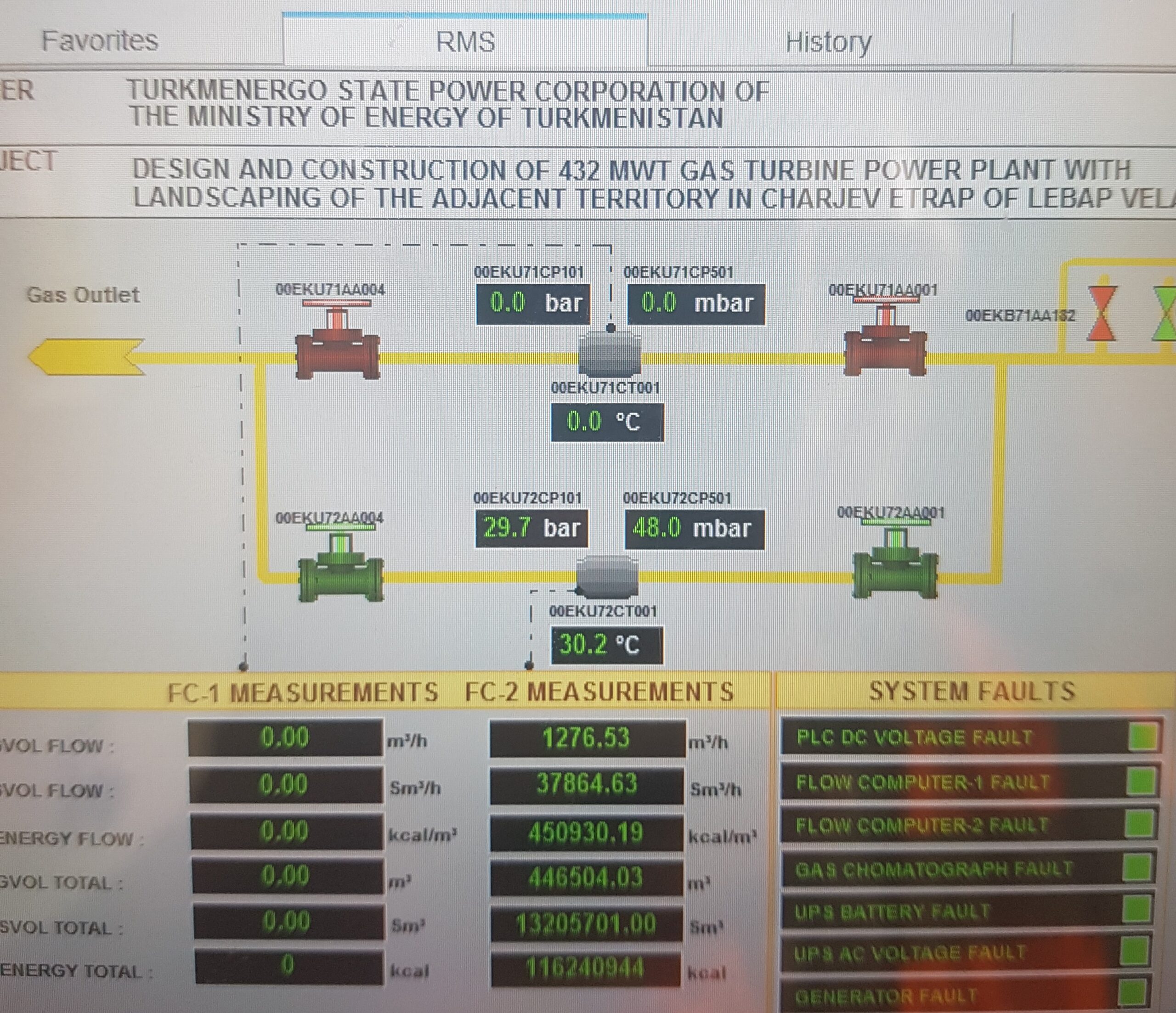 Sistemin ana bileşenleri; 2 adet yedekli ABB AC900F DCS controller, yedekli uzak IO modülleri, Elster FC1 Model Akış Bilgisayarı, ABB NGC 8206 marka Gaz Kromotografisi ve transmitter ekipmanlarından oluşmaktadır.