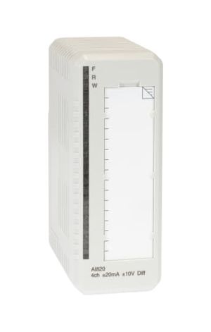 AI820 Analog Giriş Modülü, 4 diferansiyel, bipolar akım/gerilim girişine sahiptir. Her kanal, ya bir gerilim ya da akım girişi olabilir. Akım girişleri, kazara maksimum normal mod 30 V DC bağlantısını kaldırabilir. Akım girişi devresini tehlikeli giriş seviyelerine karşı korumak için, yani kazara bir 24 V kaynağı bağlanırsa, 250W akım hisse dirençlerinin direnç derecelendirmesi yaklaşık 5 Watt’tır. Bu sadece bir kanalı geçici olarak korumak içindir.